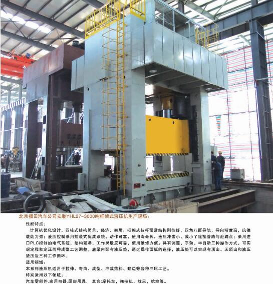 公司能夠?yàn)槭袌?chǎng)提供42大類(lèi)500余個(gè)品種的標(biāo)準(zhǔn)液壓機(jī)和非標(biāo)專用、精密伺服液壓機(jī)。產(chǎn)品廣泛應(yīng)用于汽車(chē)、航天、粉末冶金、船舶、輕工、建筑、電子、家用電器等行業(yè),并代表著我國(guó)通用液壓機(jī)的發(fā)展水平。公司生產(chǎn)、設(shè)計(jì)、開(kāi)發(fā)的液壓機(jī)產(chǎn)品完全能夠滿足國(guó)內(nèi)不同用戶多層次的需要。